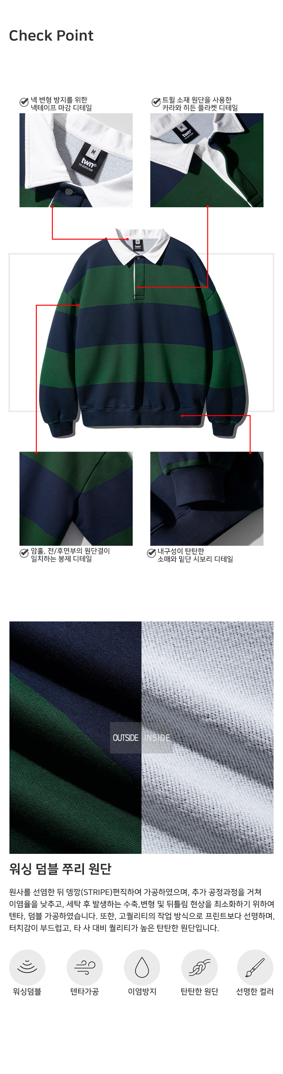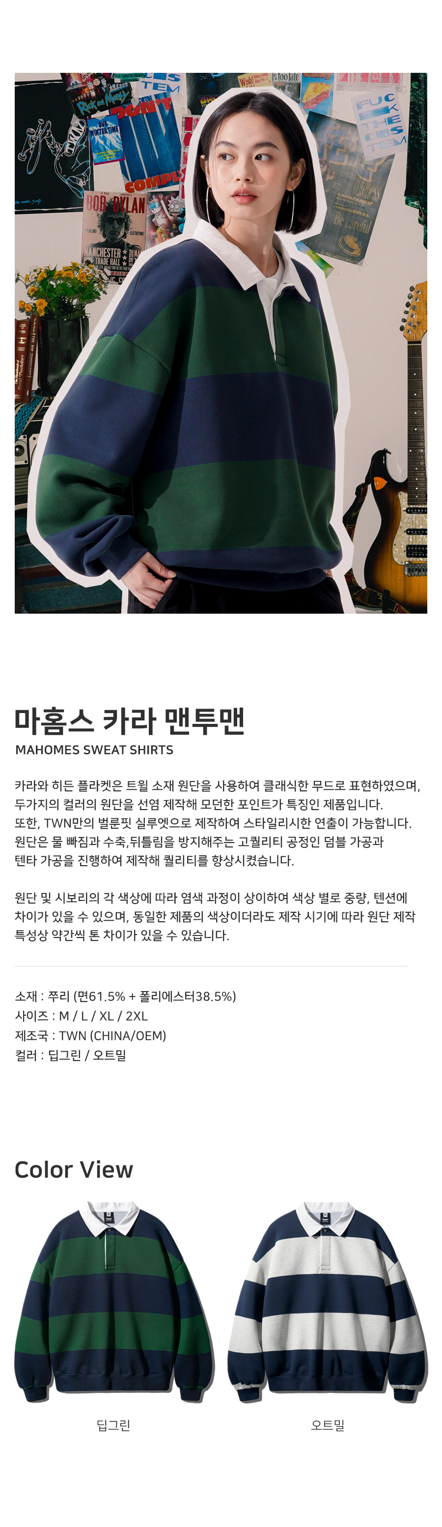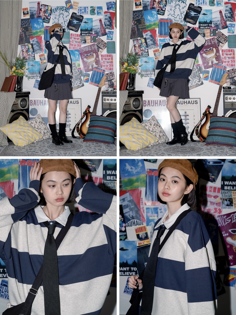 韓國TWN MAHOMES條紋復古撞色翻領大學T