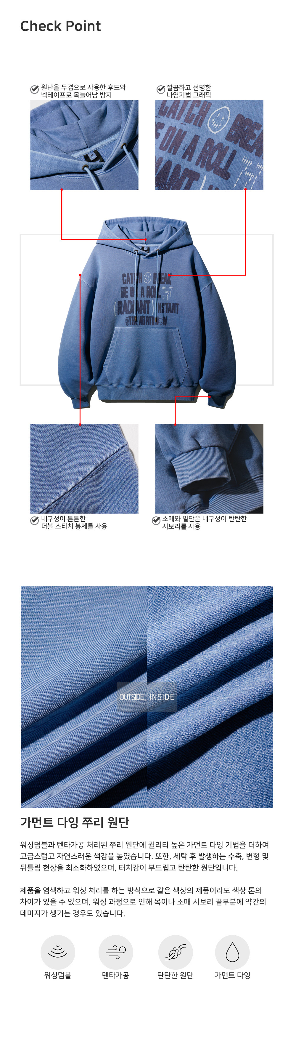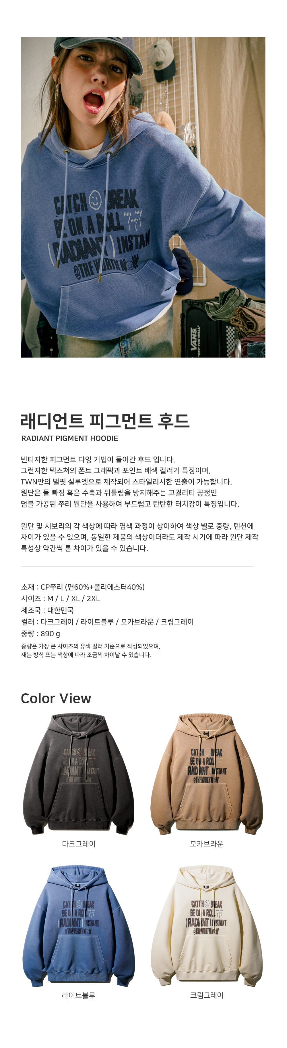 韓國TWN Radiant Pigment復古感高磅帽T