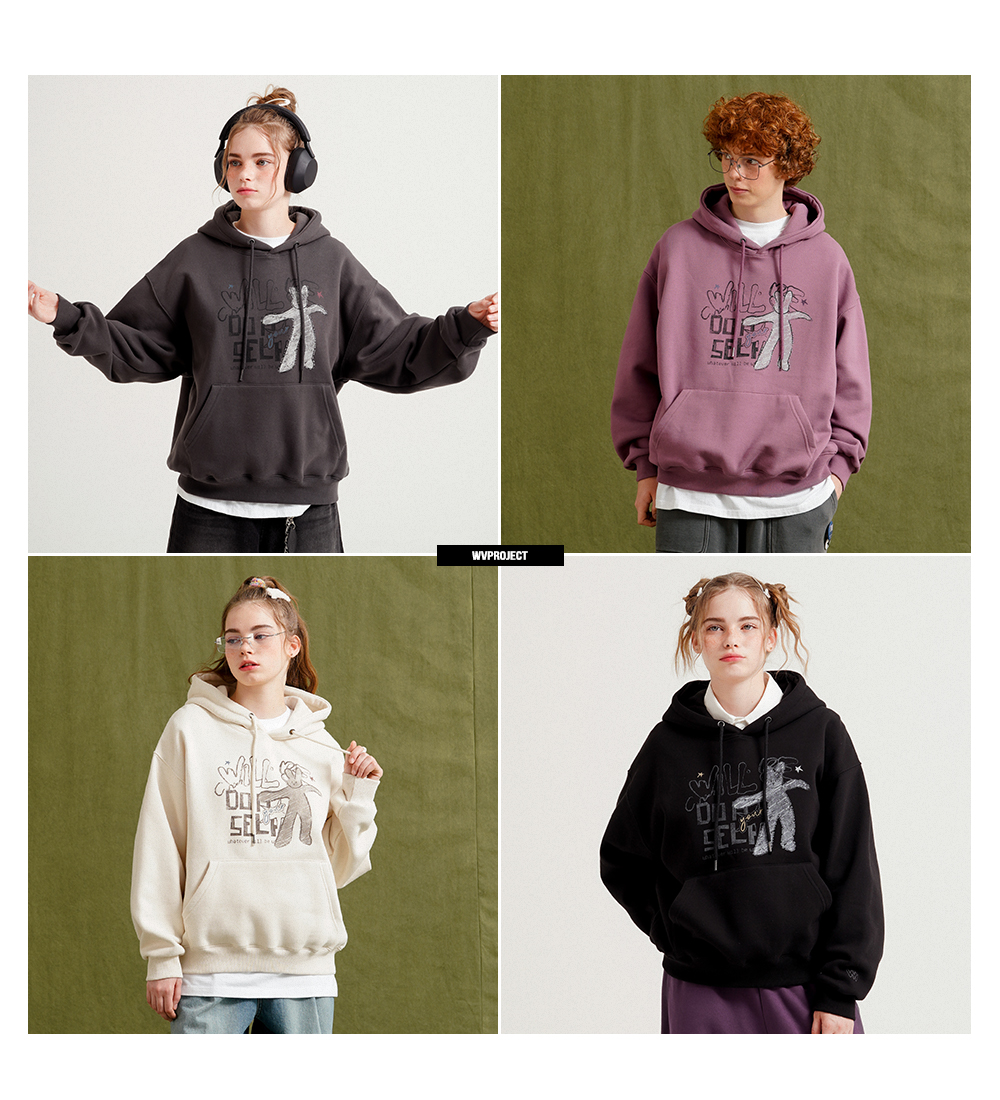 韓國WV PROJECT WILL BE迷幻兔兔高磅刷毛帽T